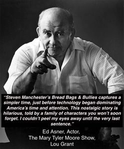 “Steven Manchester’s Bread Bags & Bullies captures a simpler time, just before technology began dominating America’s time and attention. This nostalgic story is hilarious, told by a family of characters you won’t soon forget. A must read!” – Ed Asner, Actor, Lou Grant